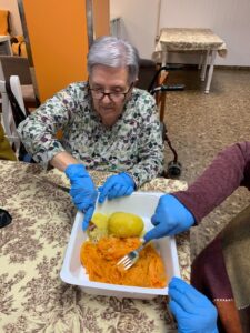 - Sopar: Amanida de tomàquet i alvocat amb oli d’oliva, truita d’espinacs i una peça de fruita. A la nostra residència, tenim el ressopó o ‘re-sopar’ per als usuaris diabètics, amb iogurt i gelatina gràcies al seu aport proteic i hidratant.