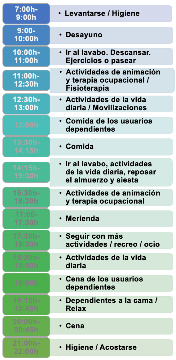En resum, les rutines diàries són una de les bases de la vida de les persones majors que viuen en una residència.
