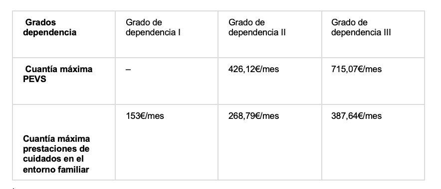 Por otro lado, por cuidados familiares, hay un importe mensual máximo de 306 euros, cantidad que actualmente perciben 450.000 personas. Así, las personas de grado I suelen percibir una media de 138 euros, 242 euros para las personas de grado II y 335 euros para las personas de grado III.